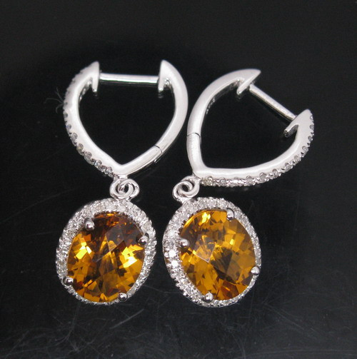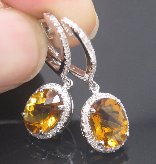 CERCEI DIN AUR ALB CU CITRIN SI DIAMANTE NATURALE